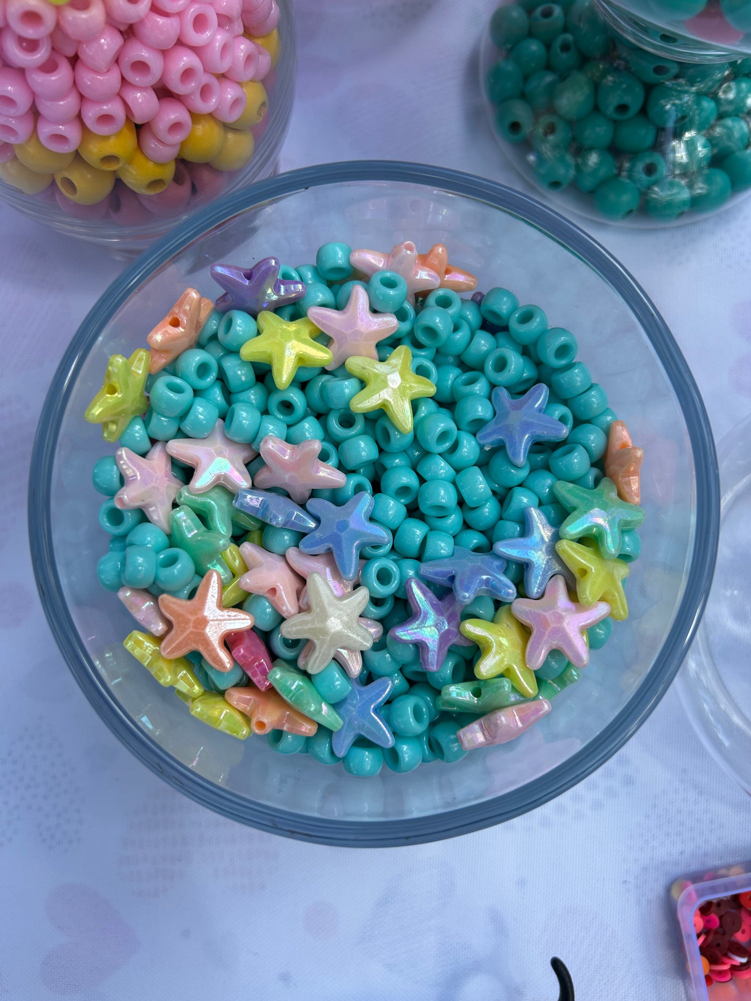 Whether it’s a birthday, a pop-up, or a random Wednesday afternoon, our bracelet bar creates space for kids and parents to co-create — laughing, designing, and making something together.